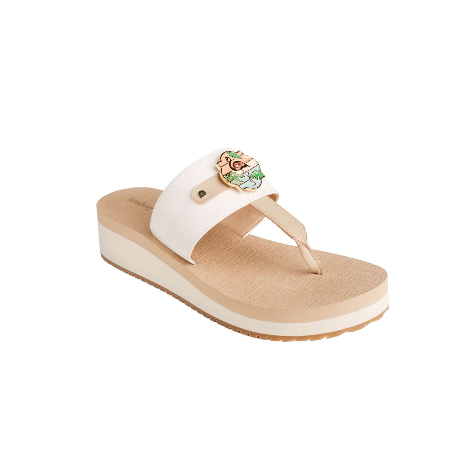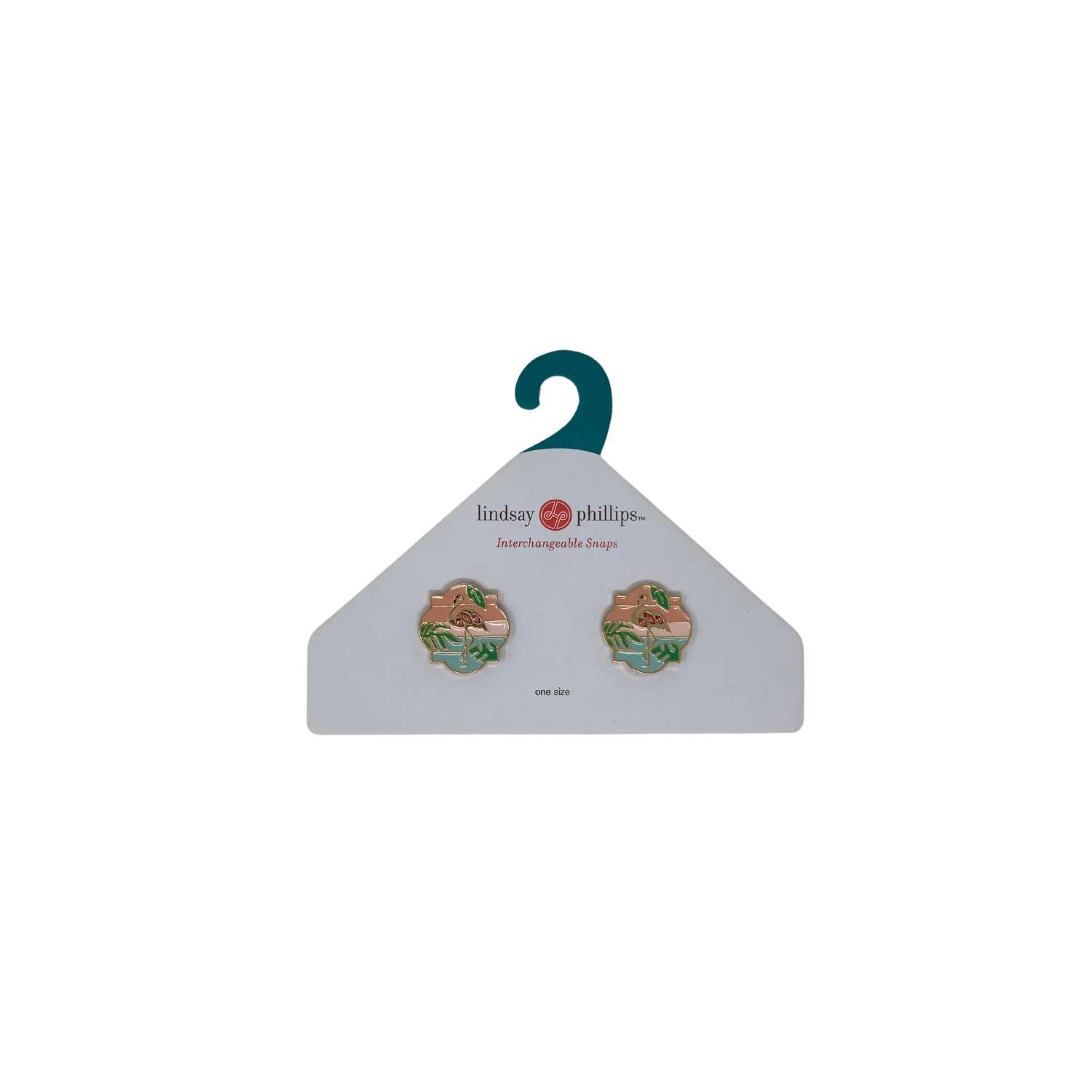 The Opal is a multi-stripe snap featuring a flamingo and palm leaves on a gold base, measuring 35 mm. Snaps are sold in pairs.